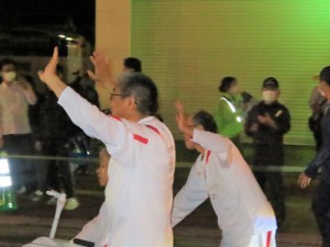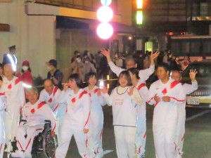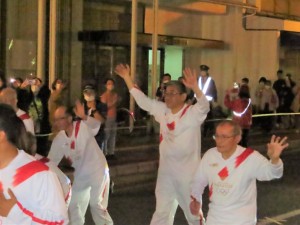 中央1丁目交差点から中央公園まで、10人でかわるがわるトーチを回しながら、沿道の観衆に笑顔で手を振り、ゆっくりゆっくりと走っていきました。