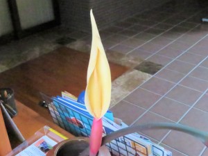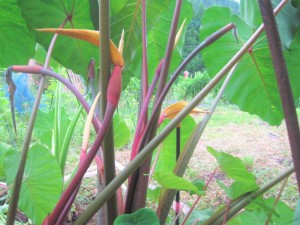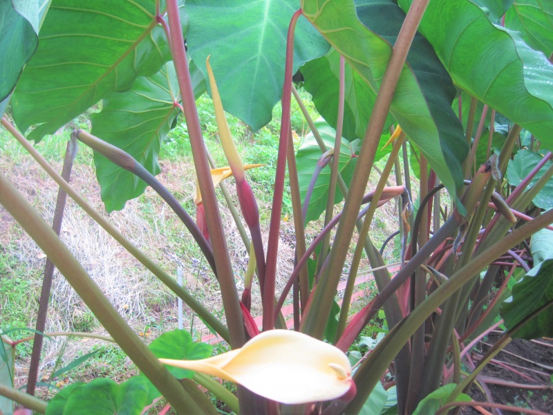 「珍しい里芋(アカメイモ)の花が咲いたよ!!」