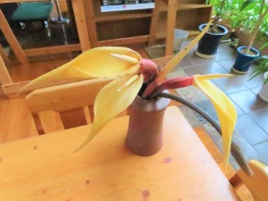 花は、花瓶にさして飾りましたが、4本あったうちの3本は落ちてしまい、今は1本を残すのみ。