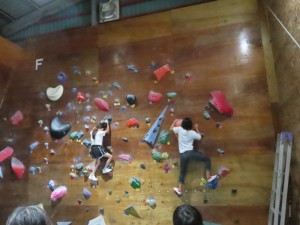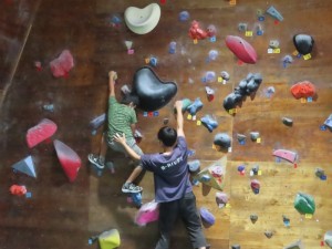 同じ色のホールド(手足をかける為の突起物)を手掛かりに登っていきます。色に応じて難易度が違い、自分の体力に応じてチャレンジできます。