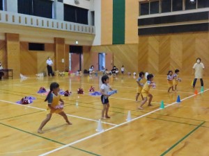 上津江町のすぎっ子こども園となかつえ保育園が合同で行う「つえっこ運動会」の練習が、月14日(火)、上津江振興局の体育館で行われました。