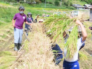 最後は稲の掛干し作業。これを行うことで、お米が一段グンと美味しくなるそうです!