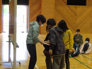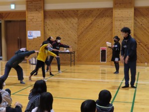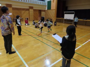 最後は体育館で、それぞれのグループが完成した「遊び」のルールを説明し、実際にみんなで遊んでみました。