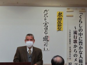 サブテーマは「歌謡曲からのメッセージ」。昔の歌の中には、被差別部落の内容を含むものもあります。