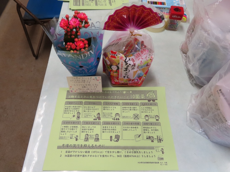 コロナ不安が高まる中、高齢者が集まる「ミニデイにかえて、上津江地区社会福祉協議会が一人暮らし高齢者等へお弁当やお花を届ける取り組♫