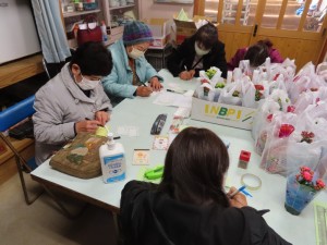 最後に皆で手書きのメッセージカードを書いて、それぞれの花に添えました(^^♪