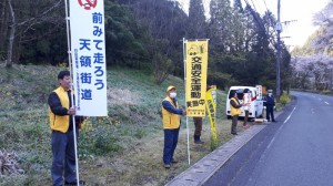 上津江町内の各自治会でも、交通安全啓発活動が行われました。