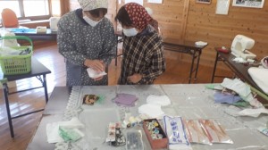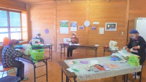 4月14日(木)、朝から雉谷自治会館にミシンを設置し、作成開始!