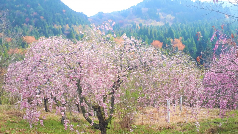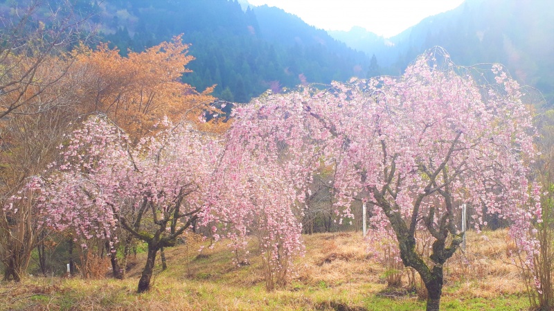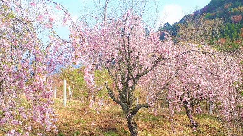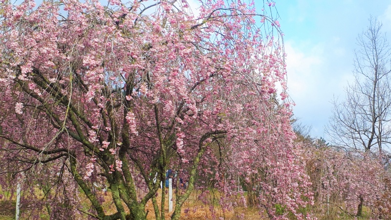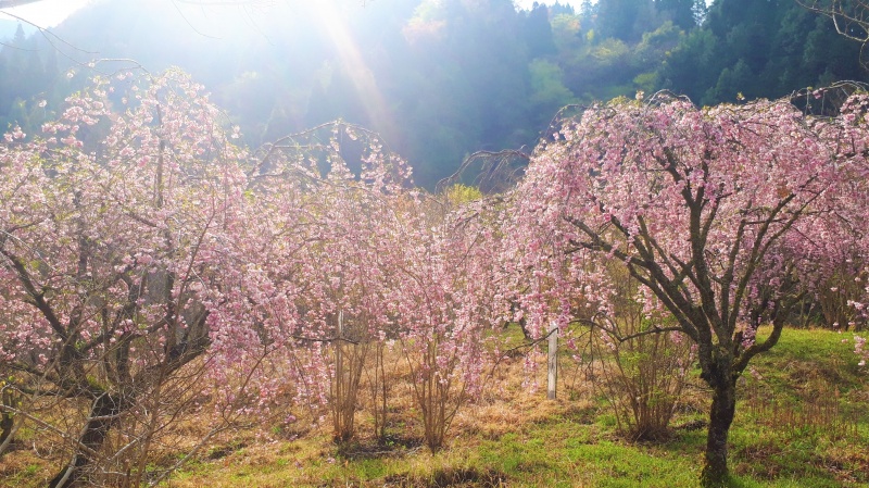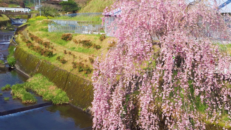 前回ご紹介した白草地区の馬頭観音さま。その祠のすぐ近くにある枝垂れ桜が、この時(4月18日)満開でした!