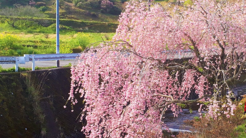 この後、白草地区へ。川沿いに種類の違う桜が並んでいる場所があります。