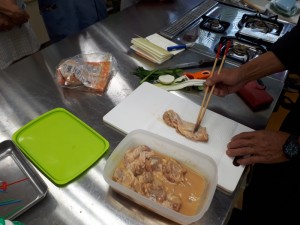 9月10日(土)小野先生(雉谷・四季の風)をお招きし、「鶏モモ肉の西京味噌焼き」を作りました。