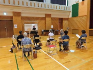 上津江体育館で行う「上津江公民館自主学習教室」。リコーダー教室やコーラス教室も8月からスタートしています。