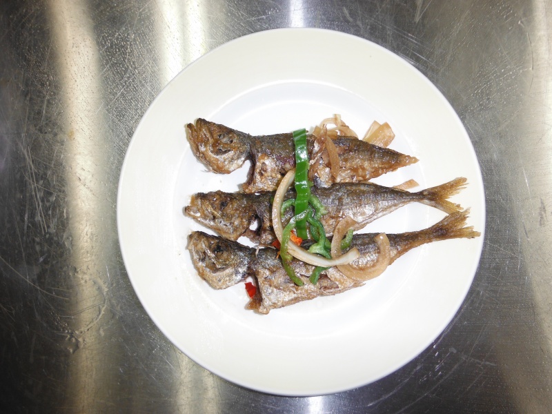 まずは小アジの下ごしらえからスタート。内蔵を取り除いて、衣を付け、油で揚げていきます。