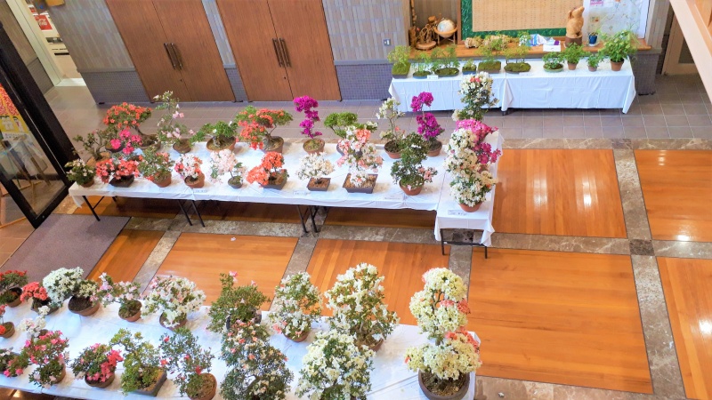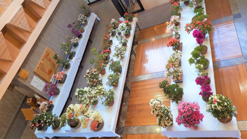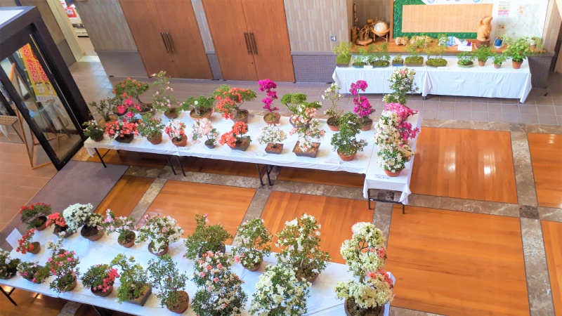 上津江公民館盆栽教室『ロビー作品展』4日目! 最新の開花状況です。