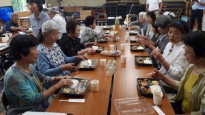 引き続き、今度は楽しいビデオを見ました。腹の皮が捩れるくらい笑った後は、民生委員・児童委員、福祉委員の方々が作った美味しい昼食を頂きました。皆で集まると、会話も弾みます。いつも以上に、ずぅっと美味しく感じますよね♪