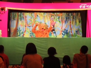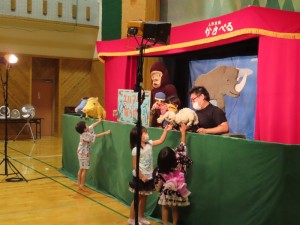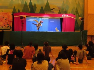 最初は人形劇です。(人形劇公演はすぎっ子こども園・中津江保育園・上津江公民館・中津江公民館の合同事業)