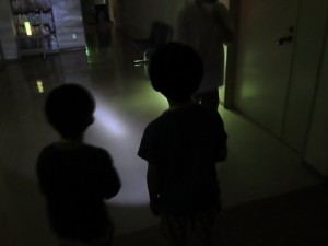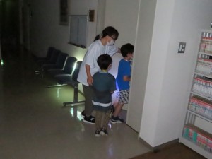 最後は、振興局の中を探検!すっかり日も落ちて、子ども達はおっかなビックリで進んでいきました。