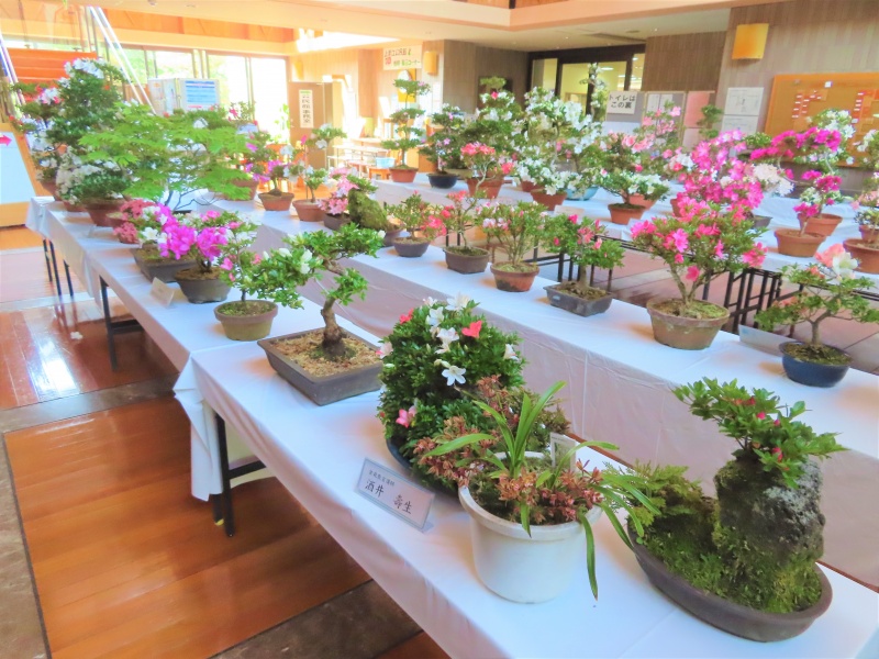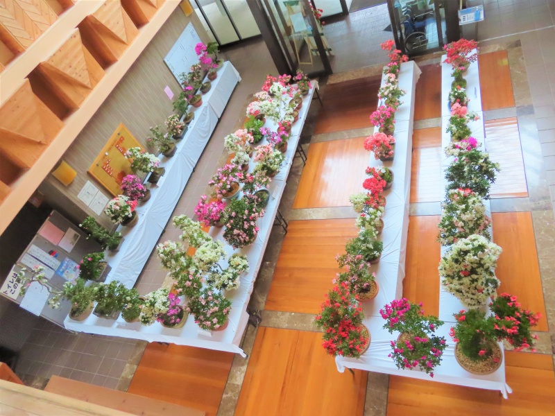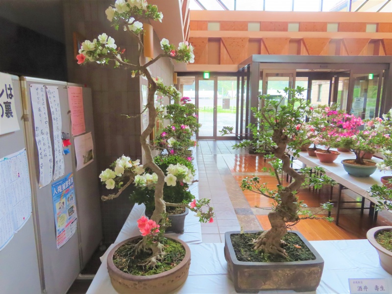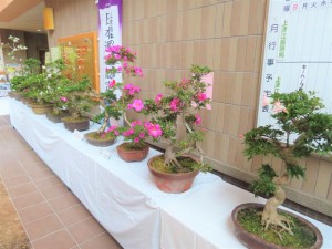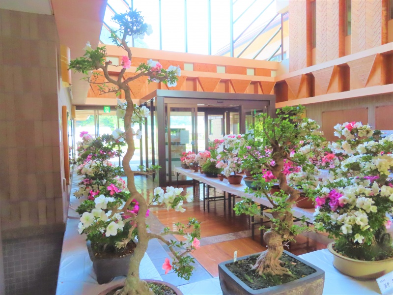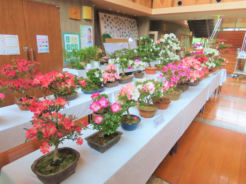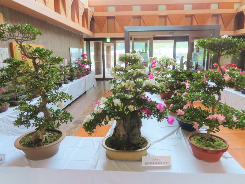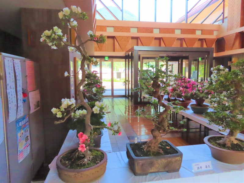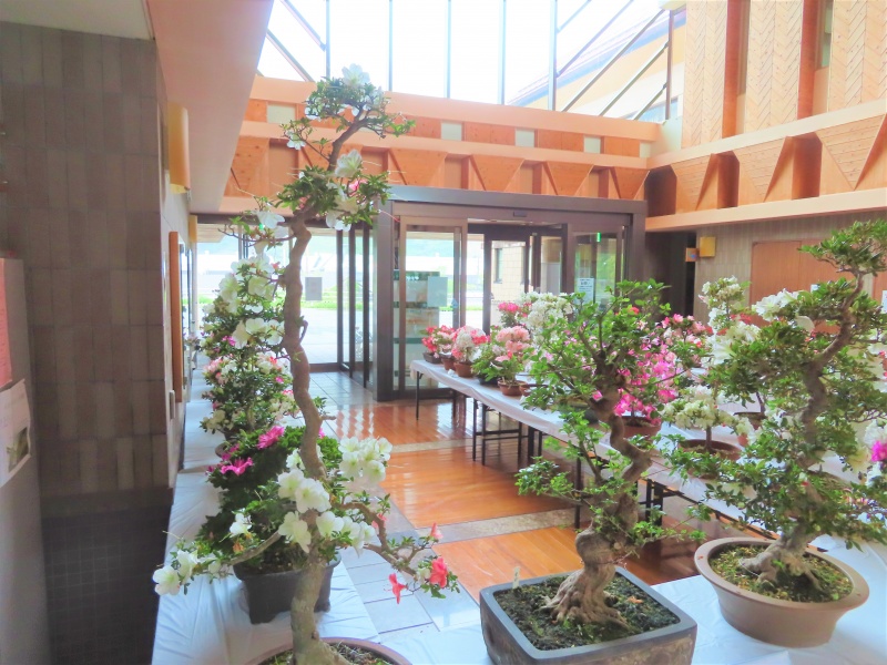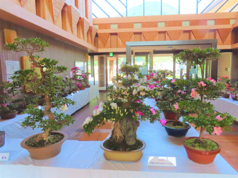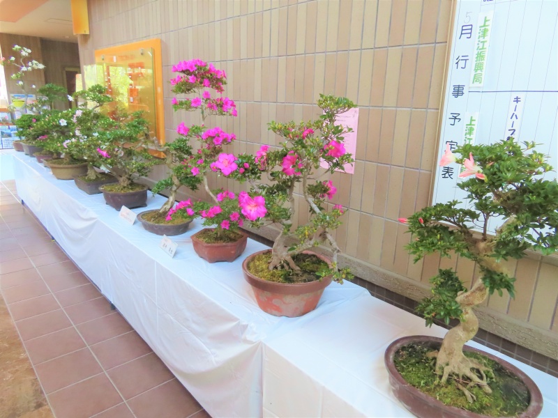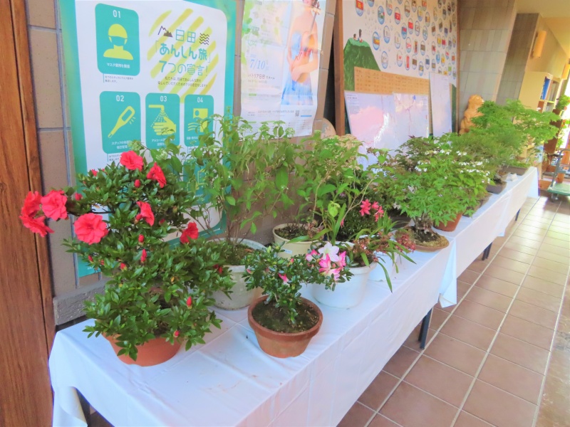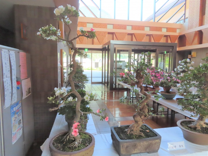 上津江公民館盆栽教室の作品展(さつき展)が、上津江振興局ロビーで始まりました!