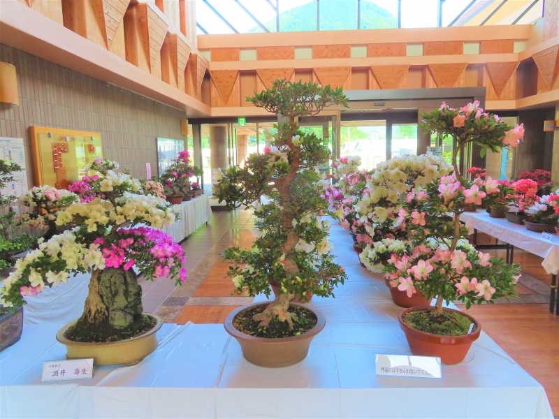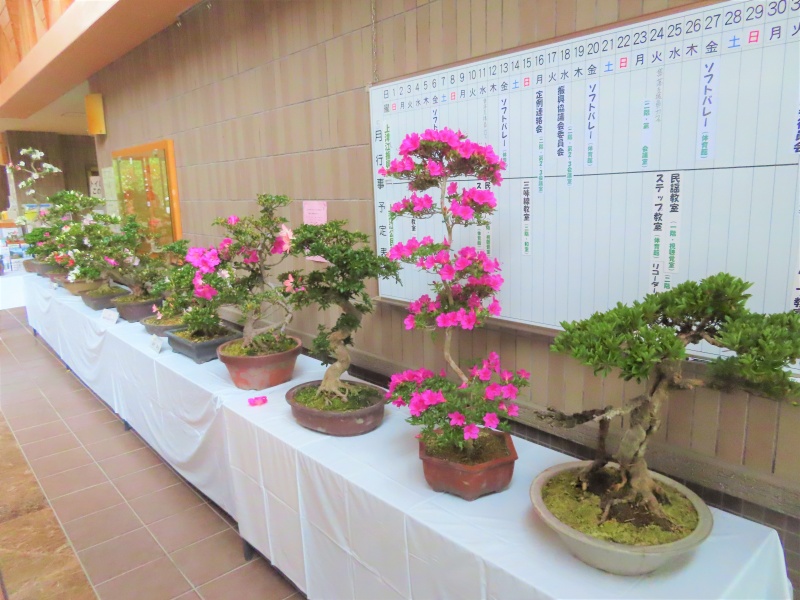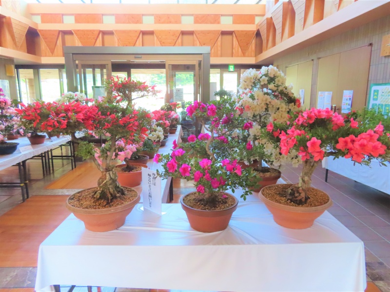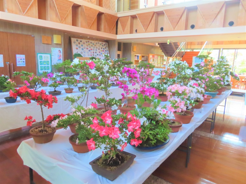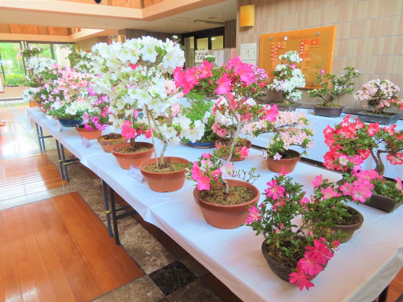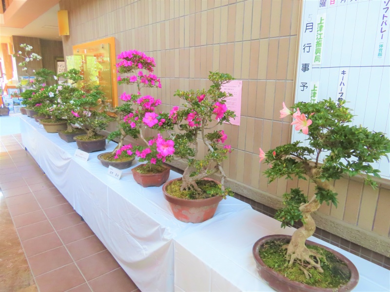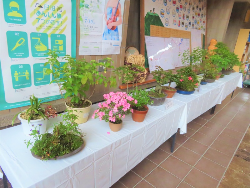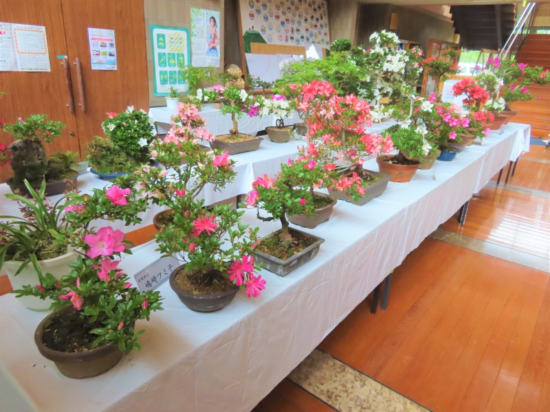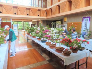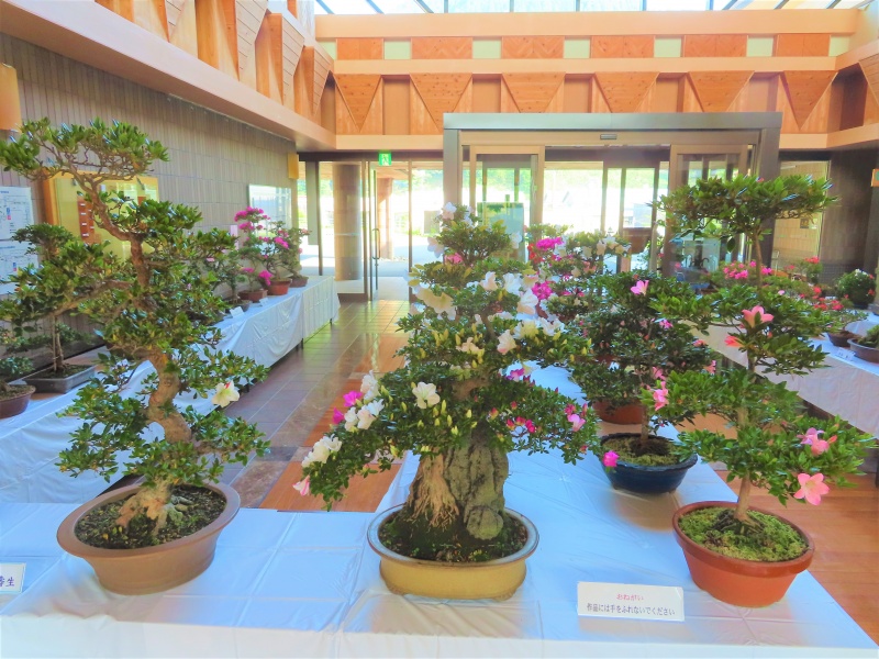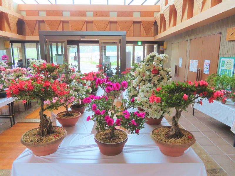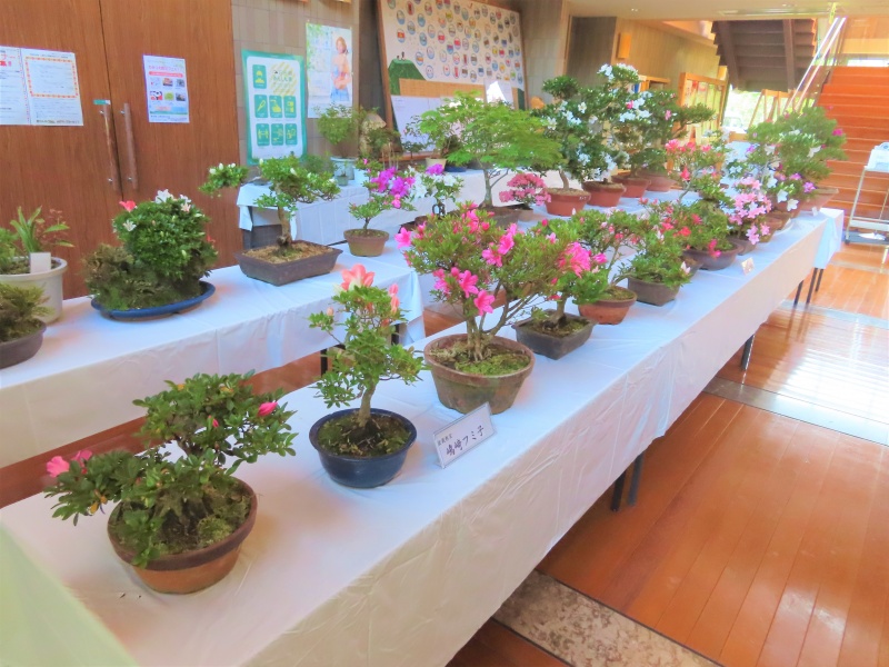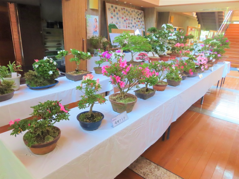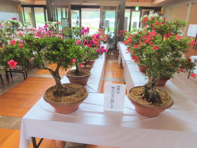 上津江公民館盆栽教室の作品展(さつき展)が、上津江振興局ロビーで始まりました!