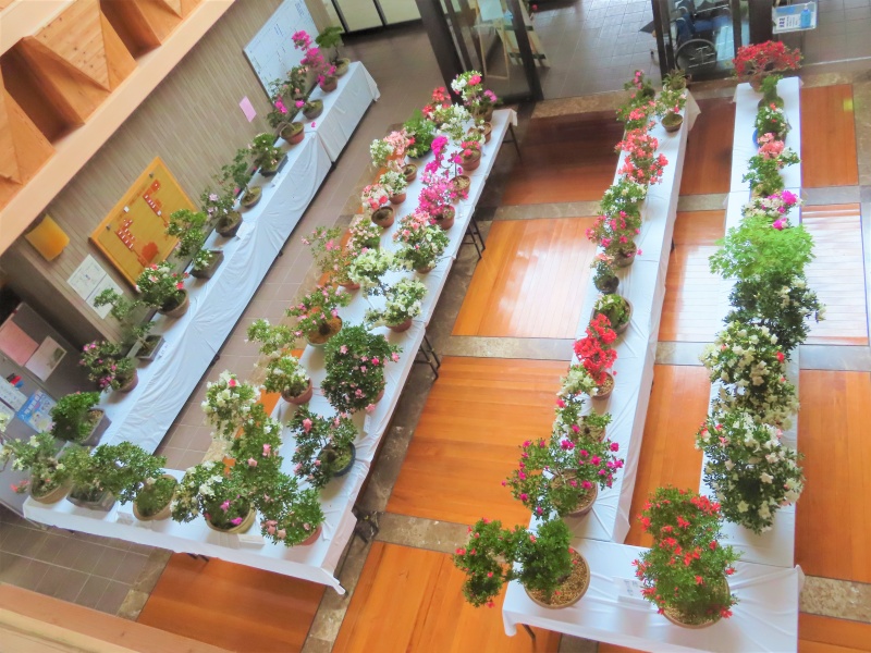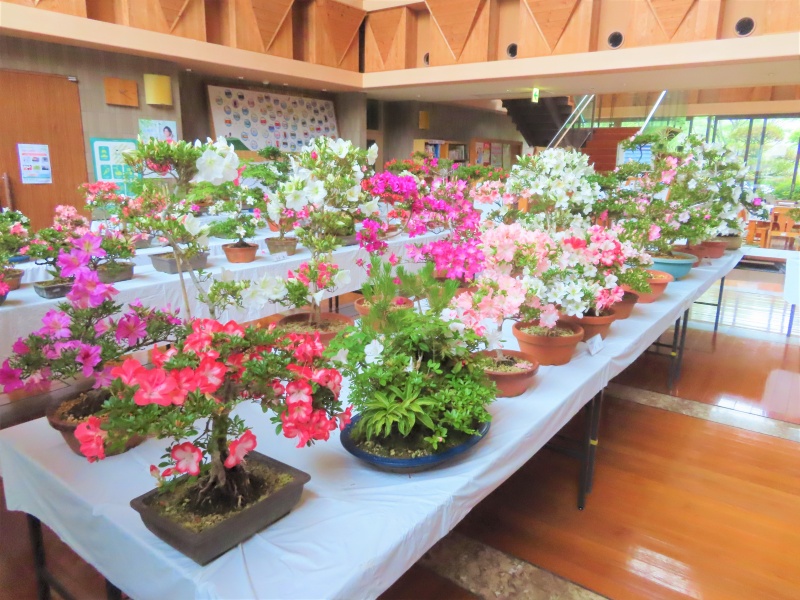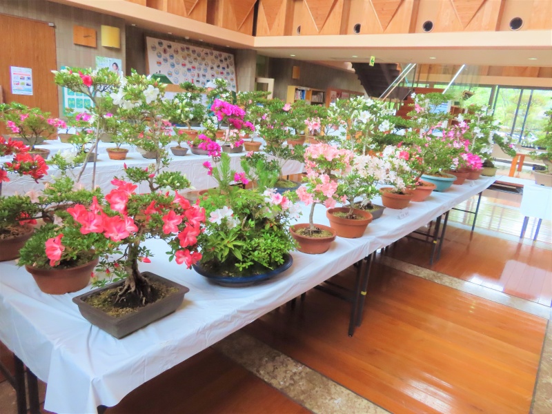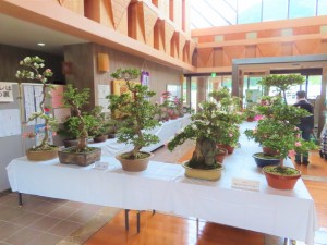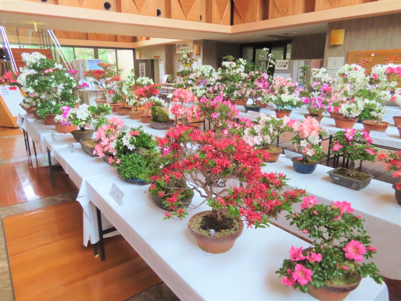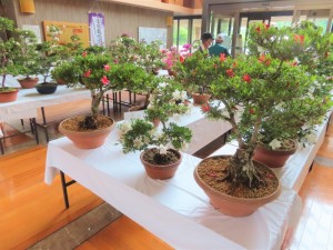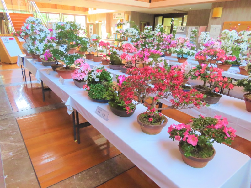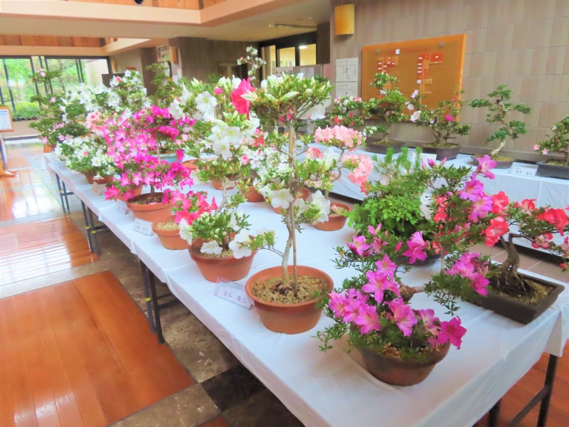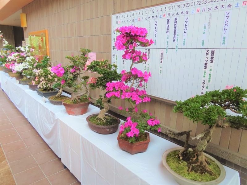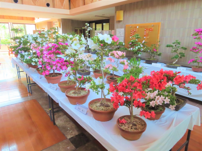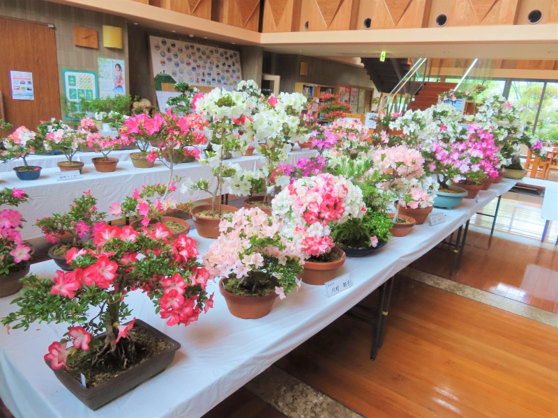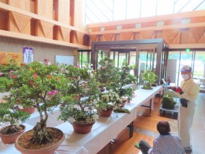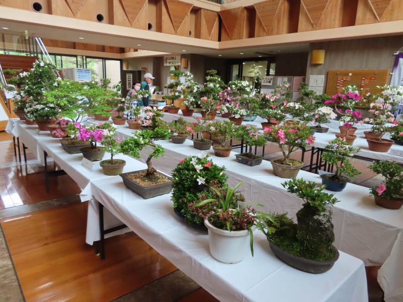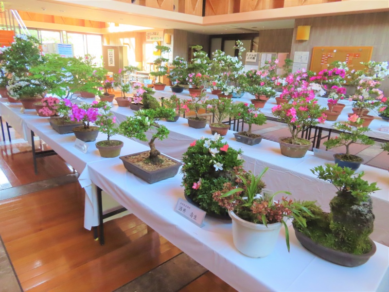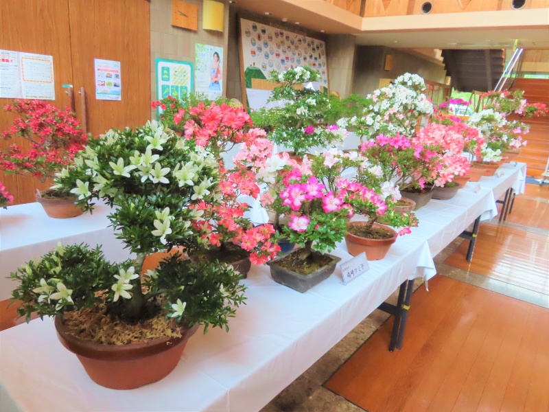 上津江公民館盆栽教室の作品展(さつき展)が、上津江振興局ロビーで始まりました!