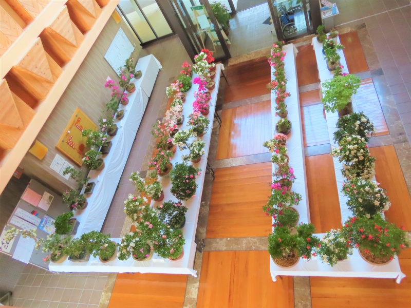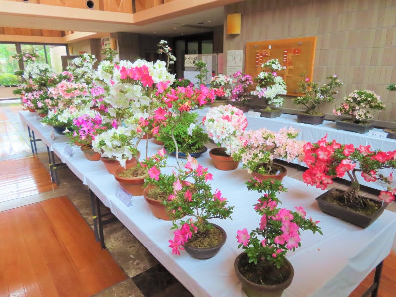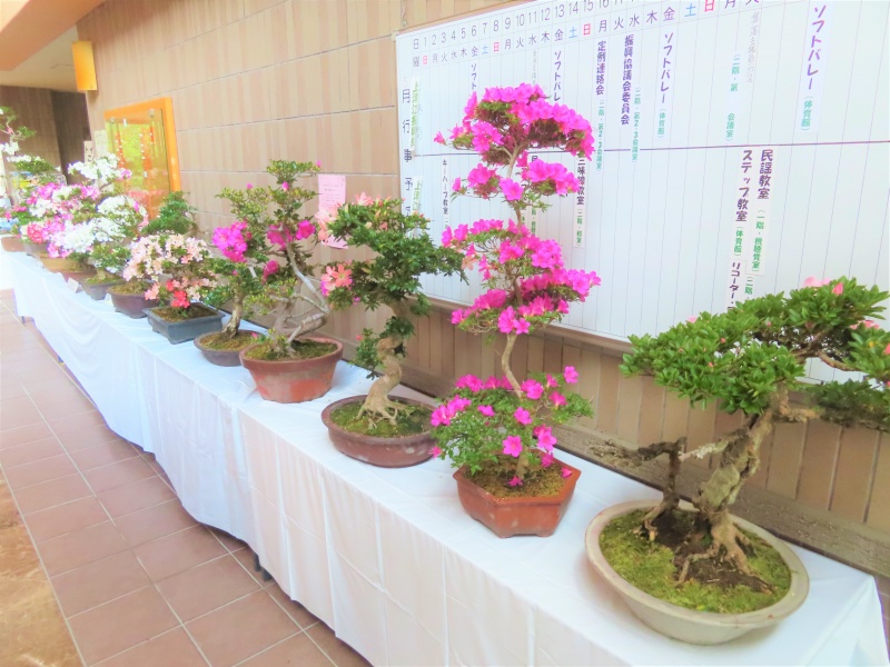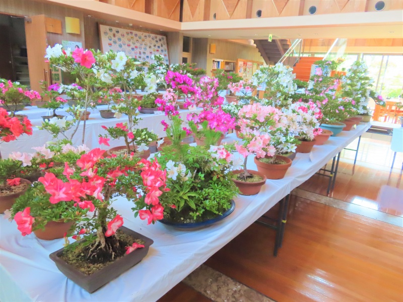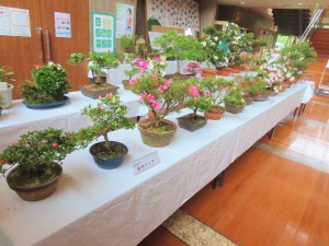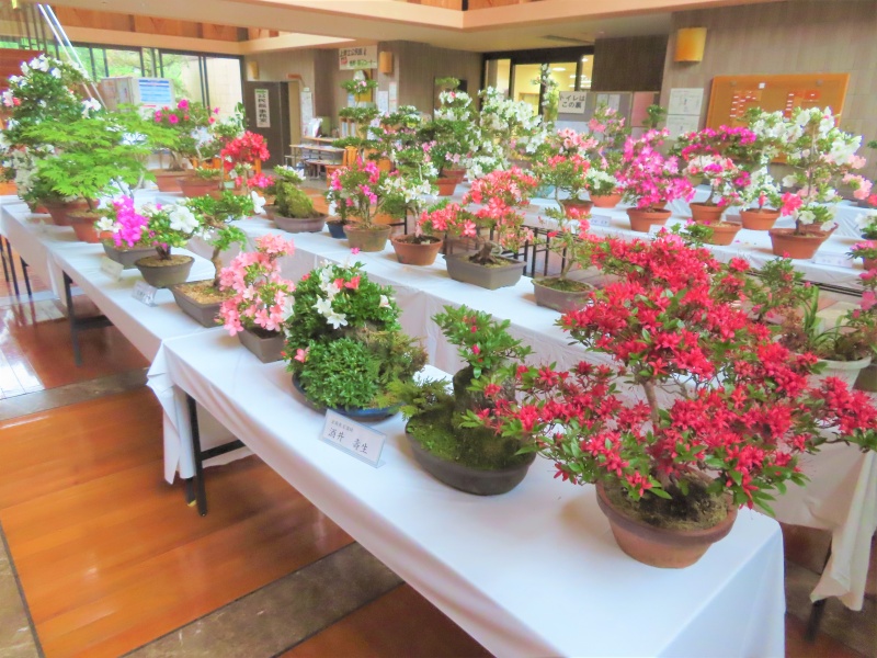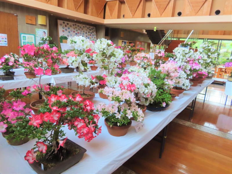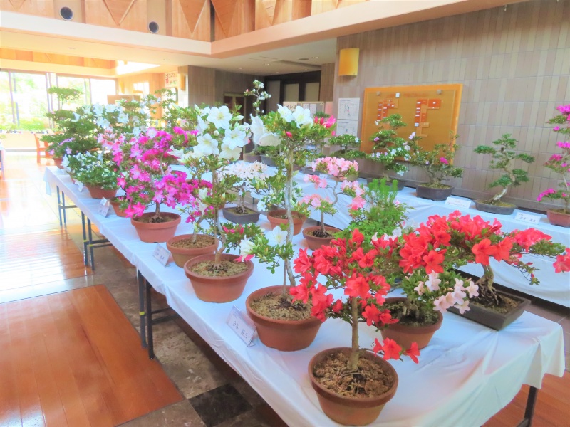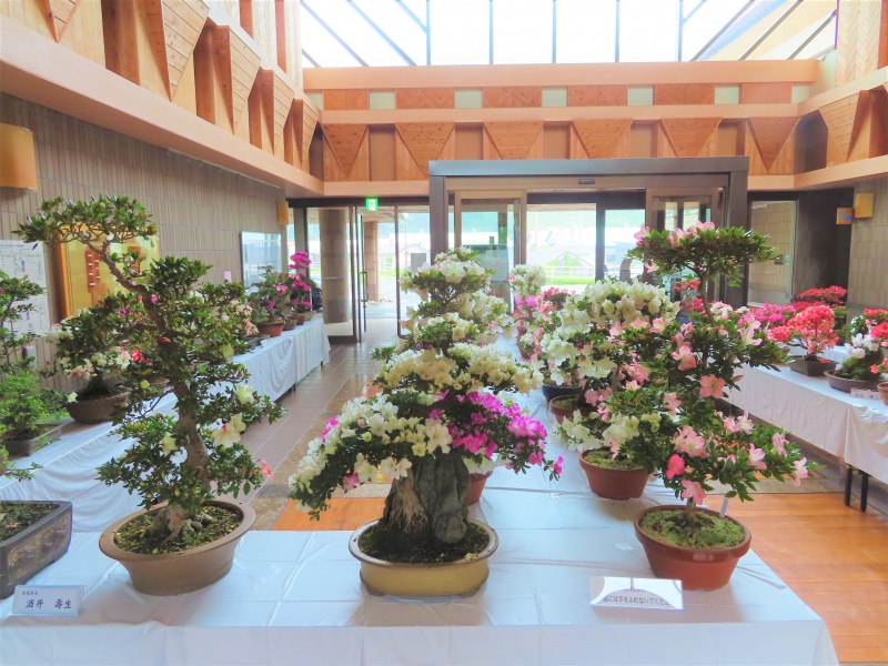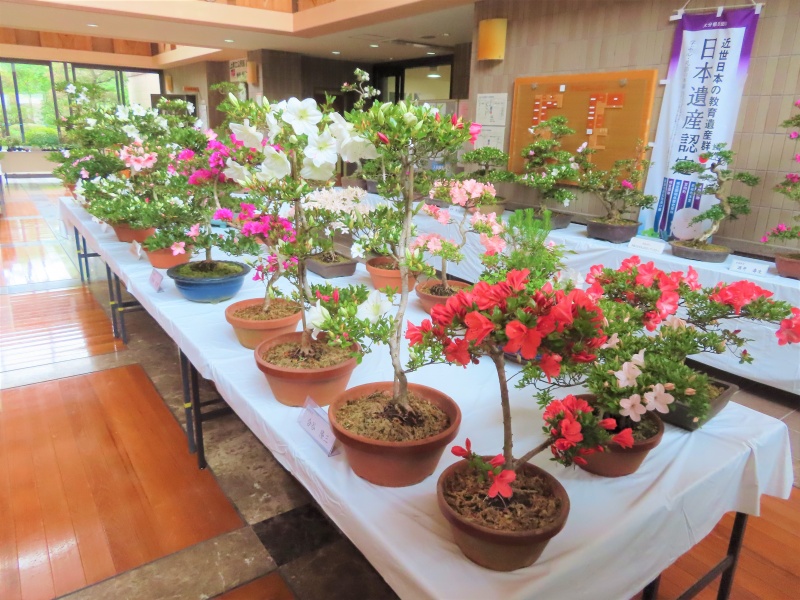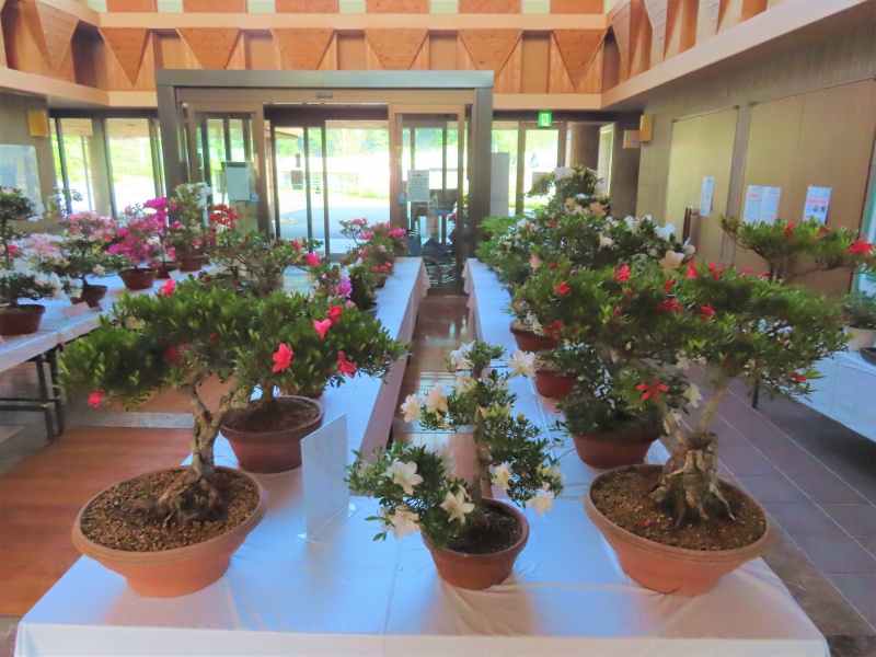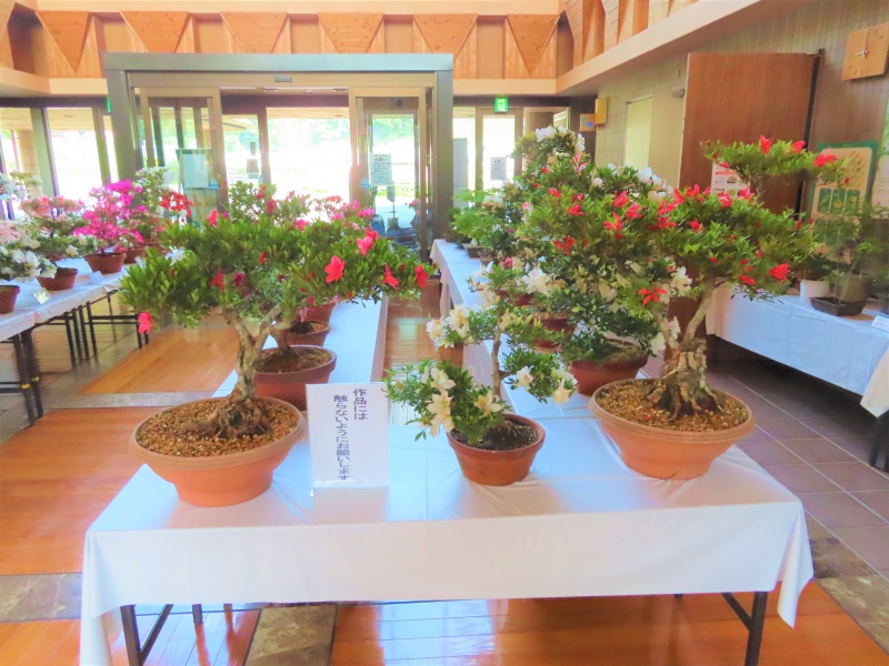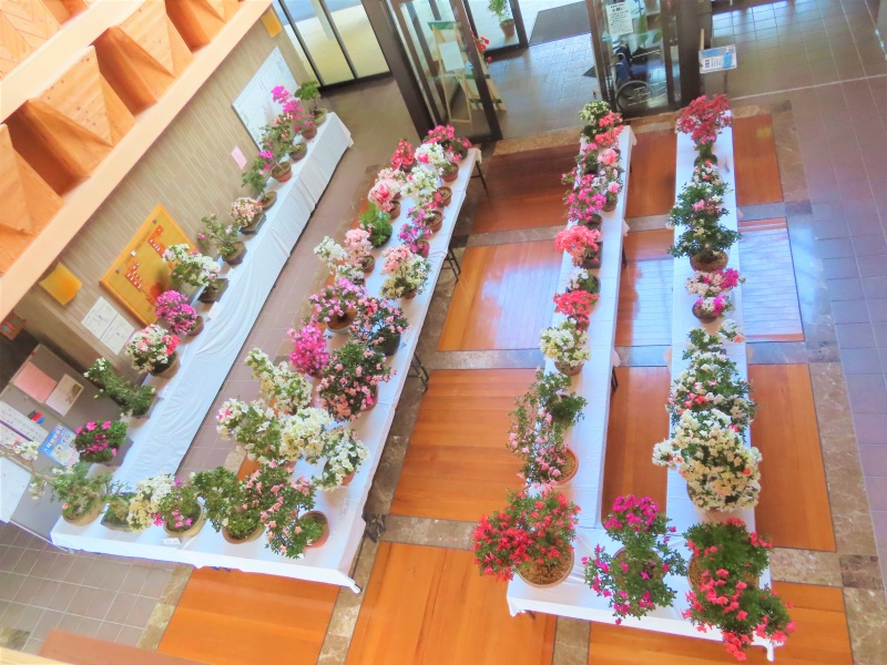 上津江公民館盆栽教室の作品展(さつき展)が、上津江振興局ロビーで始まりました!