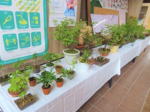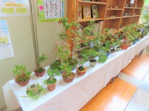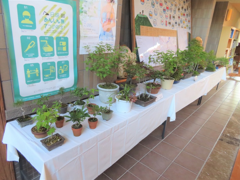 盆栽作品展は、平日の朝8時半から夕方5時まで、上津江振興局ロビーで開催中!