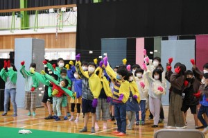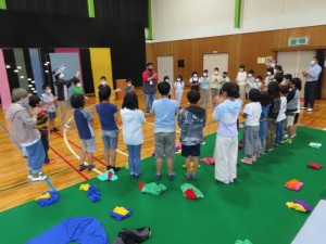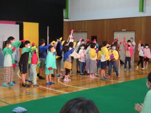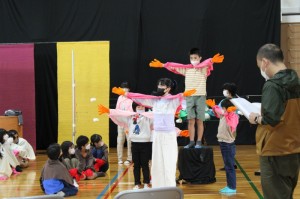特定非営利活動法人アートイン「ashibina」の皆さんによるワークショップで、小学生がダンスを創作したり、楽器を使って、ある場面を表現したりしました。