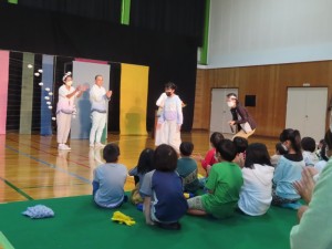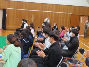 子ども達と団員の演劇は笑いあり涙あり…中学生も観劇し、盛大な拍手が沸き起こっていました!