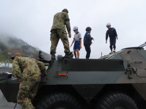 会場展示(すぎっ子こども園・やすらぎ苑・津江小中学校・公民館川柳作品・公民館の活動紹介・鷹匠の文化展示・自衛隊と警察車両展示)