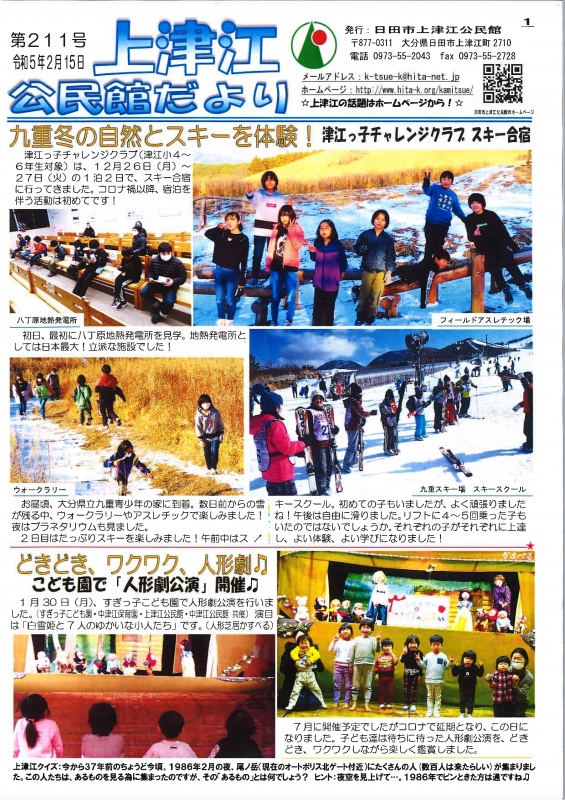 上津江公民館だより第211号(R5/2/15)アップしました!