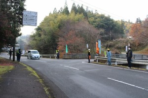 12月12日(月)、上津江町の㈱トライ・ウッドが上野田地区の交差点で早朝の交通安全街頭啓発活動を行いました。