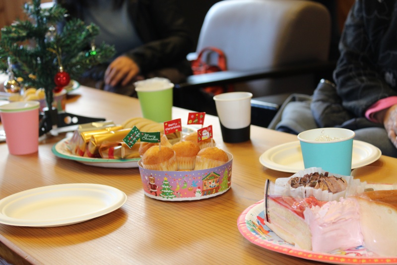 クリスマスの装飾を楽しみながら、ケーキ等の軽食やプレゼント交換等で楽しみました。