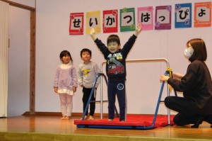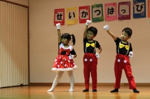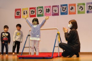 楽器の演奏に始まり、ダンス、コップタワー、鉄棒の演技、ボールを使った運動、劇、合唱と、それぞれの年齢に合わせたたくさんの発表がありました。