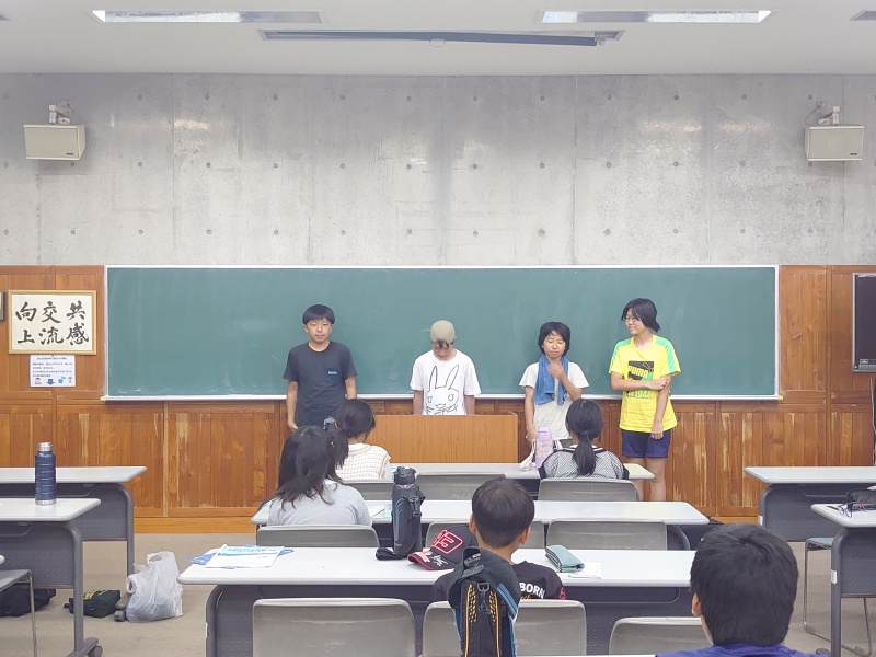 朝のつどいでは、旗係、団体紹介とがんばりました。