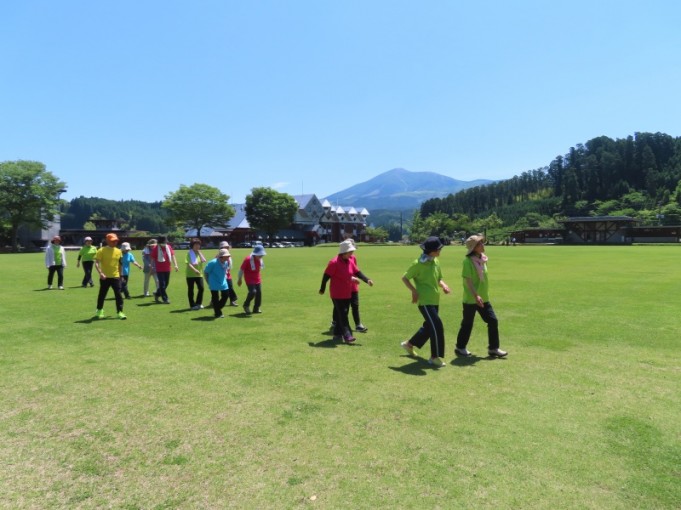木村インストラクターの指導で、木魂館の芝生グランドでスロージョギングを行いました