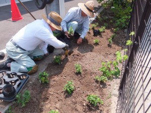 昨日も会員11名が、30度を超える暑さの中、花壇の草取りや、コスモス・菊の苗植えをしてくださいました。