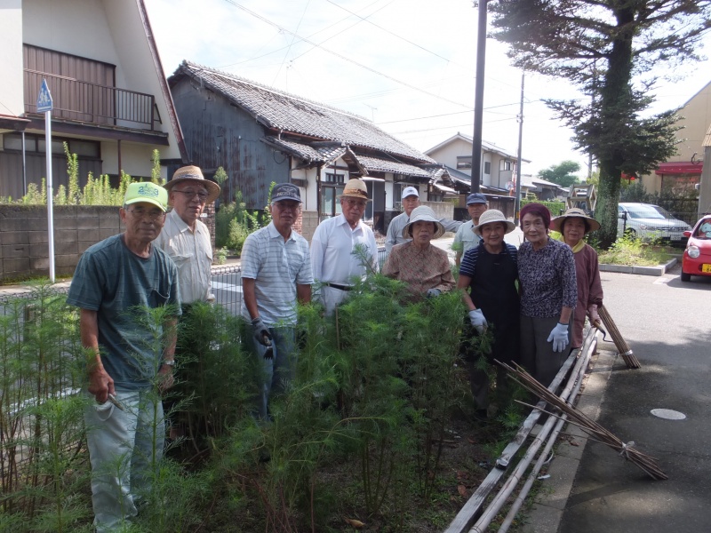 白寿会(淡窓町老人会)の皆さんが、朝から咸宜公民館花壇の草取りをしてくださっています。