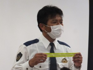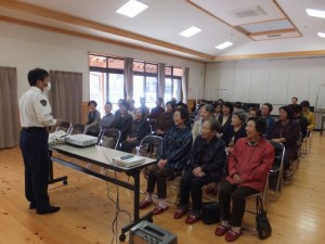 その前に10分程度、日田警察署交通課の係長より「高齢者の交通安全」について講話いただきました。