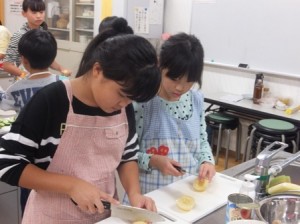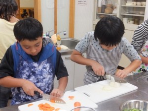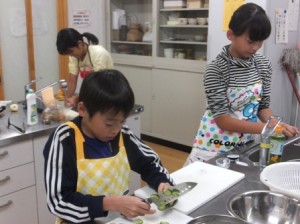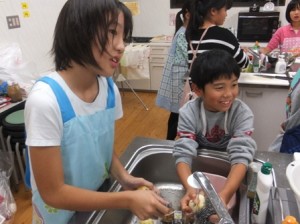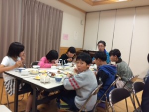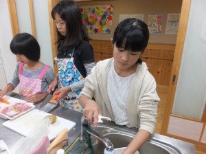 本日の買い出し当番はランドセルを置いてそのまま食材買い出しへ。そのほかの人は宿題をします。