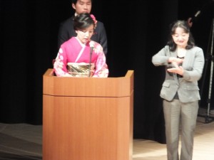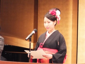 司会進行に咸宜校区の成人者、「二十歳の誓い」の発表も咸宜校区の成人者が代表で発表しました。