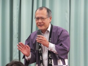 中城町の住民30数名を前に軽妙な語り口で、時事問題から家族の問題まで幅広く話されました。また、日本人の誇りや素晴らしさを改めて気付かせてくれました。