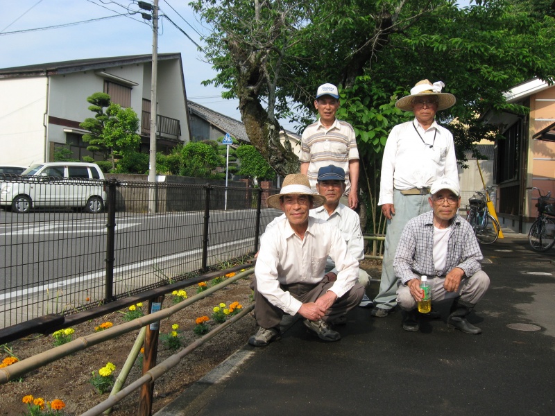 昨日、咸宜公民館の花壇に「白寿会」(淡窓町老人会)の有志の皆さんが、マリーゴールドを植えて下さいました。