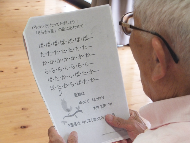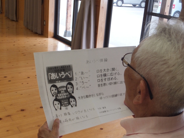 本日は「あ・い・う・べ」体操も行いました。口を大きく動かして、舌や喉の筋肉を鍛えました。