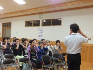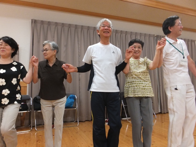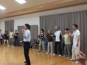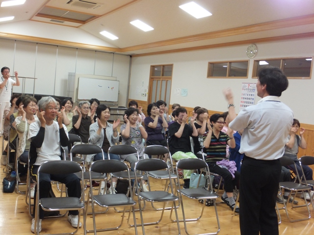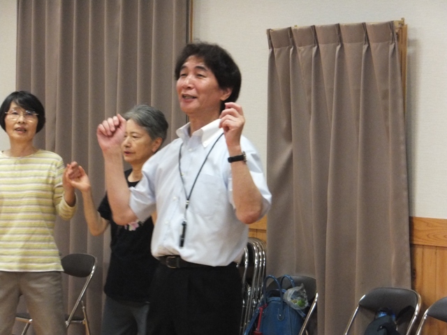 テーマは健康講座「レクレーションで楽しく」。穴井純成さんにご指導いただき、約1時間半、楽しく歌を歌ったり身体を動かしました。