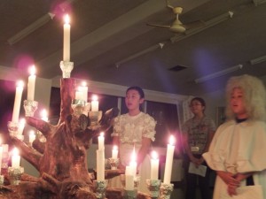 神聖な雰囲気の中、「火の長」と「女神」様が登場し、キャンドルの集いがスタートしました。