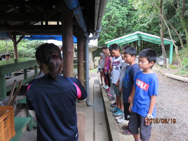 朝ご飯終了後、施設職員さんによる、厳しい野外炊飯用具チェック!をうけました。緊張・・・