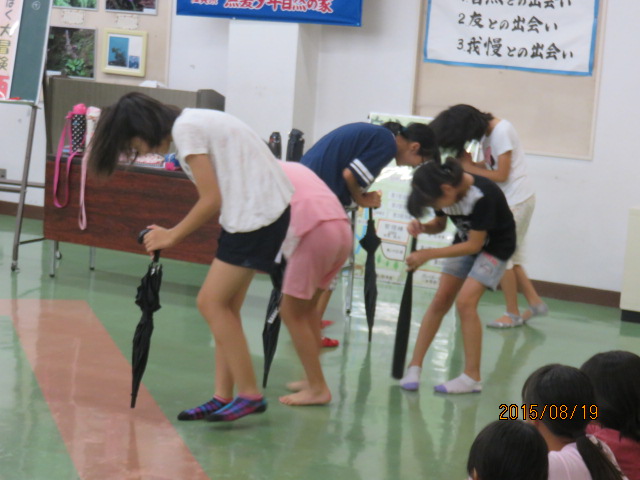 クイズを出題する班、影絵を披露する班、「ひげダンス」を披露する班など、それぞれに工夫した発表に盛り上がりました。