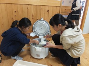 ハンバーグにはやっぱり白いご飯です。 配膳係さん、人数分あるかな?