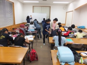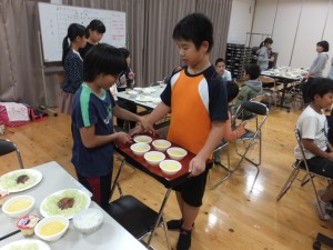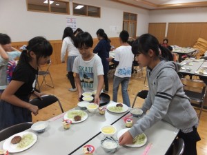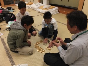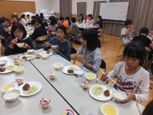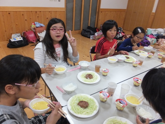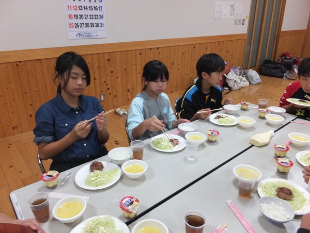夕食終わって、入浴時間、第2便の児童はトランプをしたり、 宿題をする児童もいました。