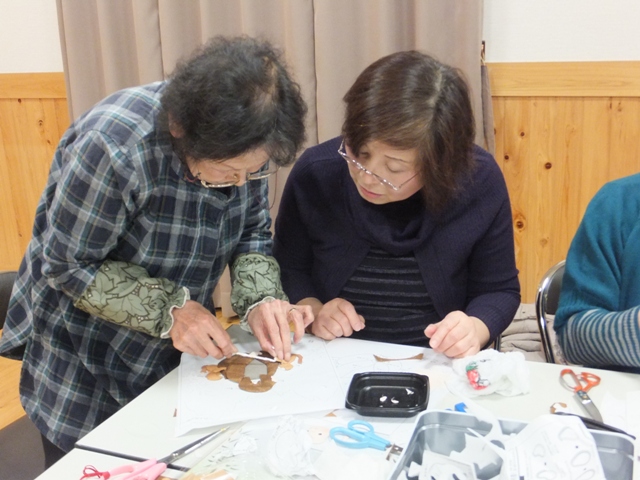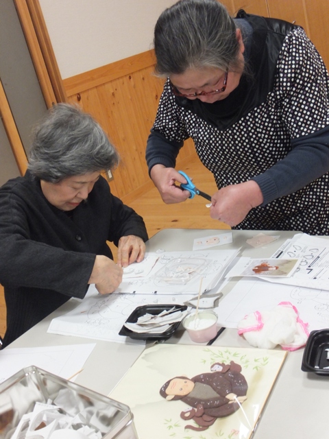 12月18日(金)、成人セミナー第7講で、来年の干支「さる」の「くるみ絵」作りを行いました。
